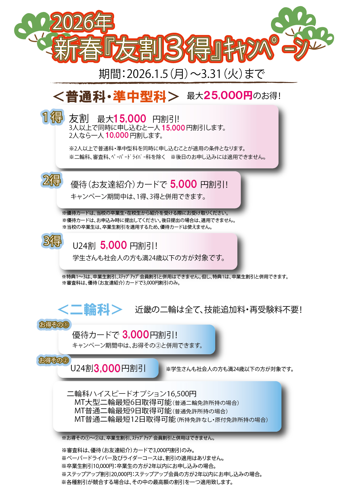 普通科・二輪科キャンペーン料金表へ
